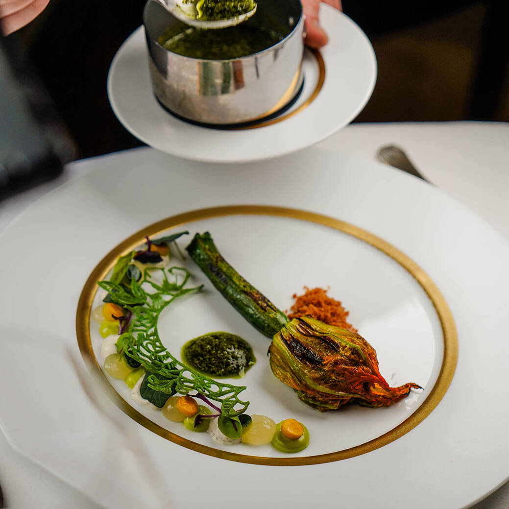 Onze witte brigade onder leiding van Chefs Tim Bood & Hette Hettema nemen u mee in de producten die het seizoen te bieden heeft, die zij voor u tot de mooiste gerechten verwerken. De klassieke, doch eigentijdse stijl van onze keuken sluit naadloos aan bij de grandeur van dit rijksmonument. Geniet van het Chefs Menu waar de nadruk op het seizoen ligt of kies voor het Prestige Menu waar de meest luxueuze ingrediënten waar Hette en Tim mee werken centraal staan.